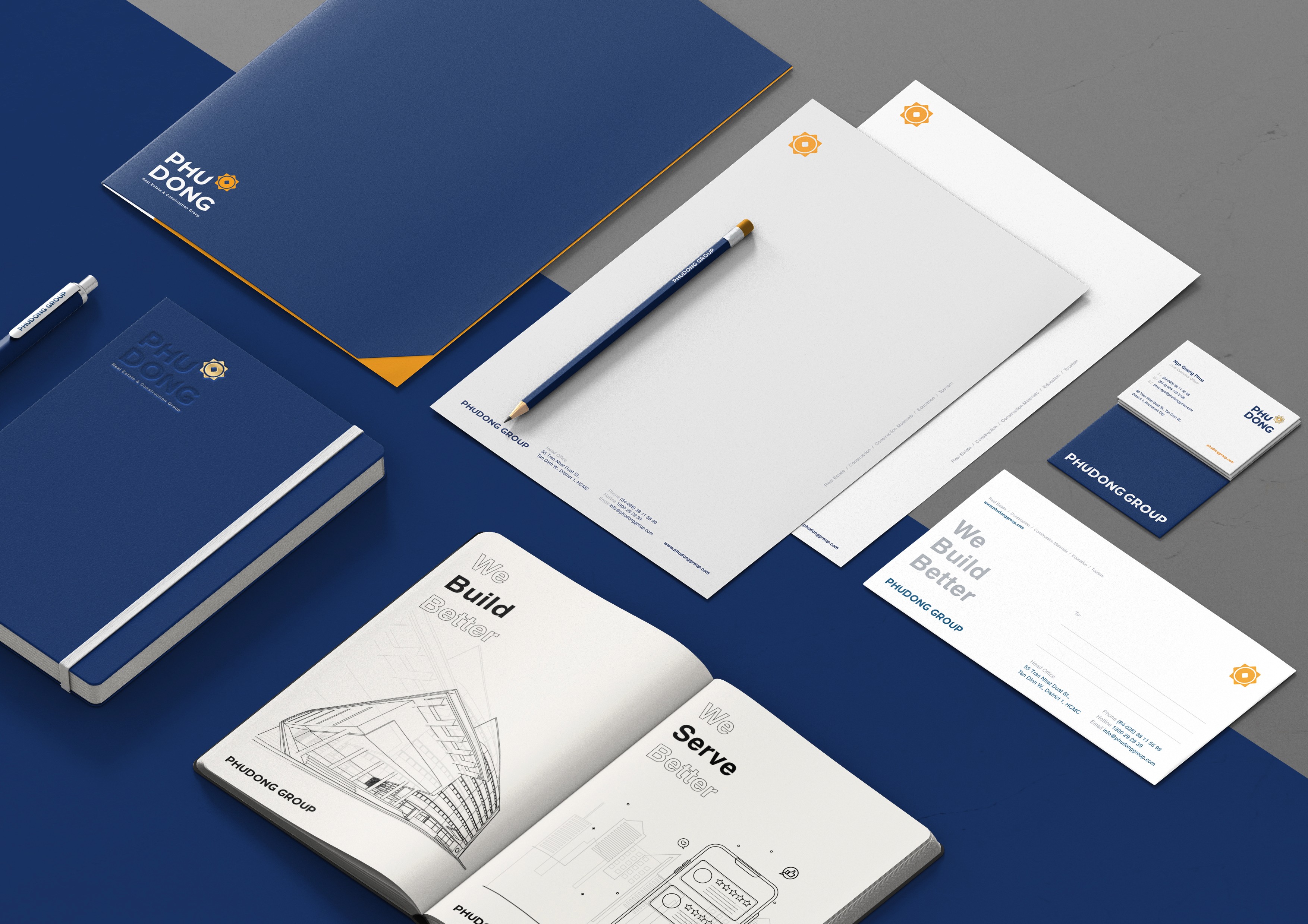 The brand identity set of Phu Dong Group is created to archive the purpose of simple application, trusted company and young color tone.