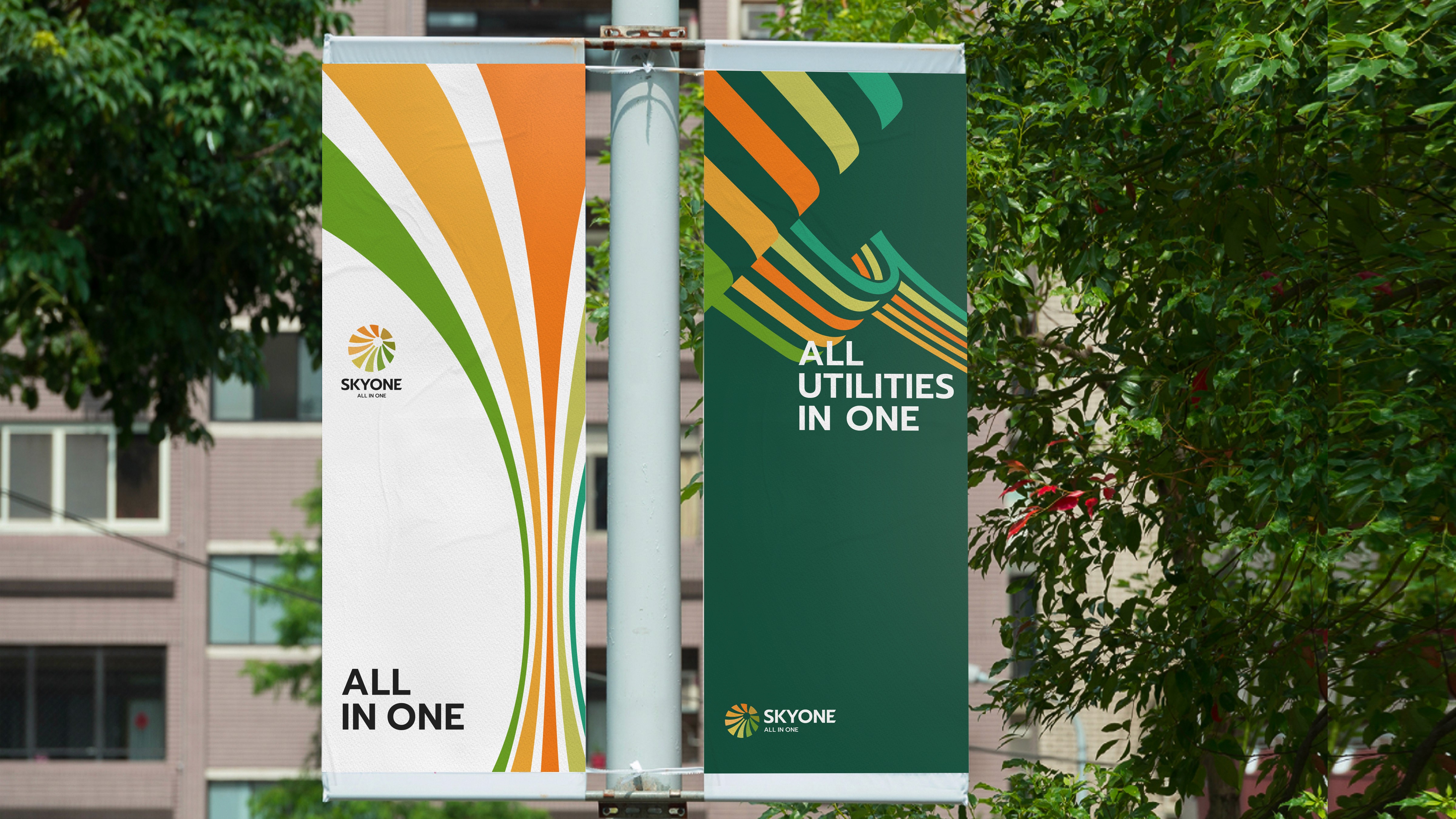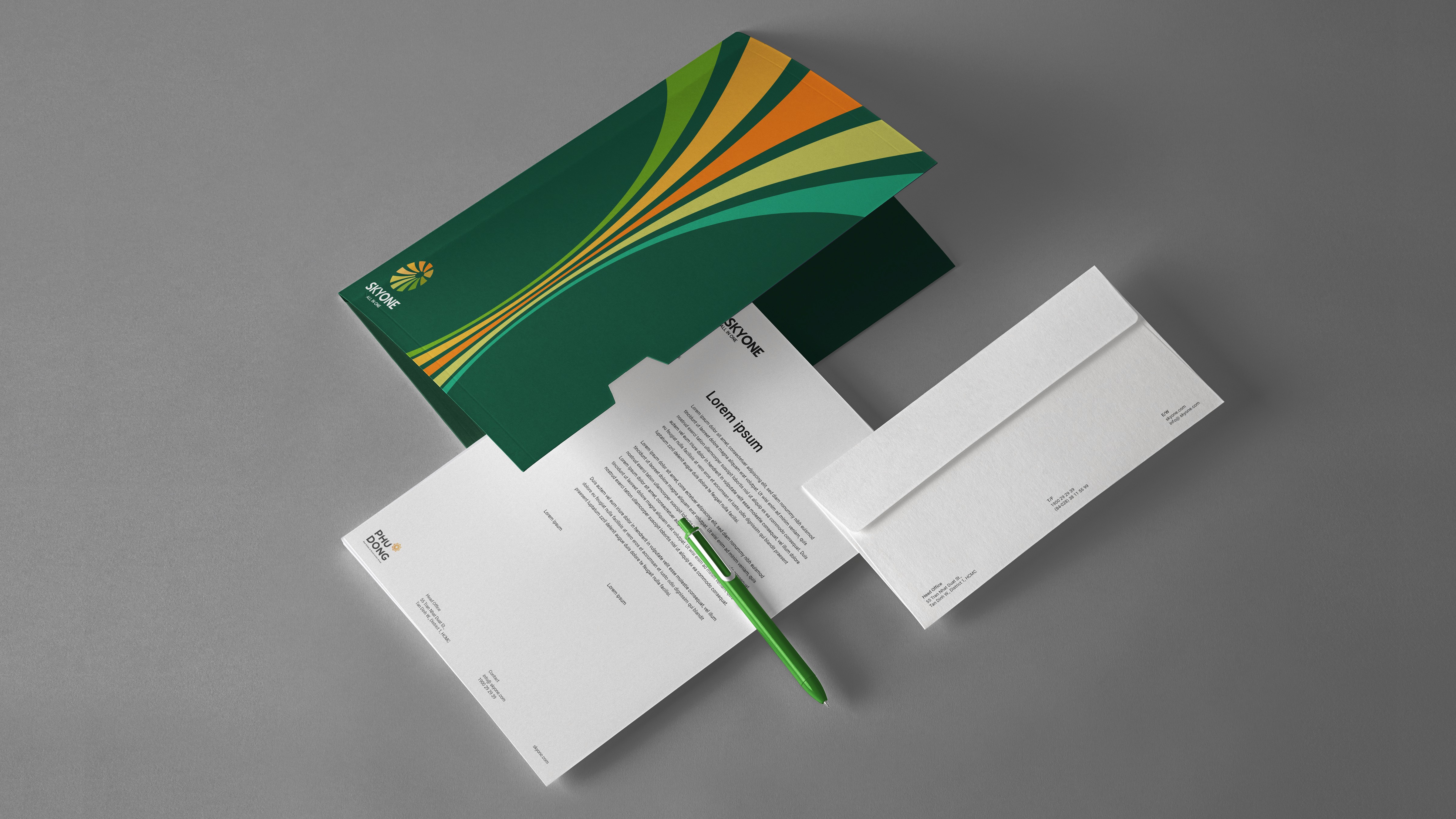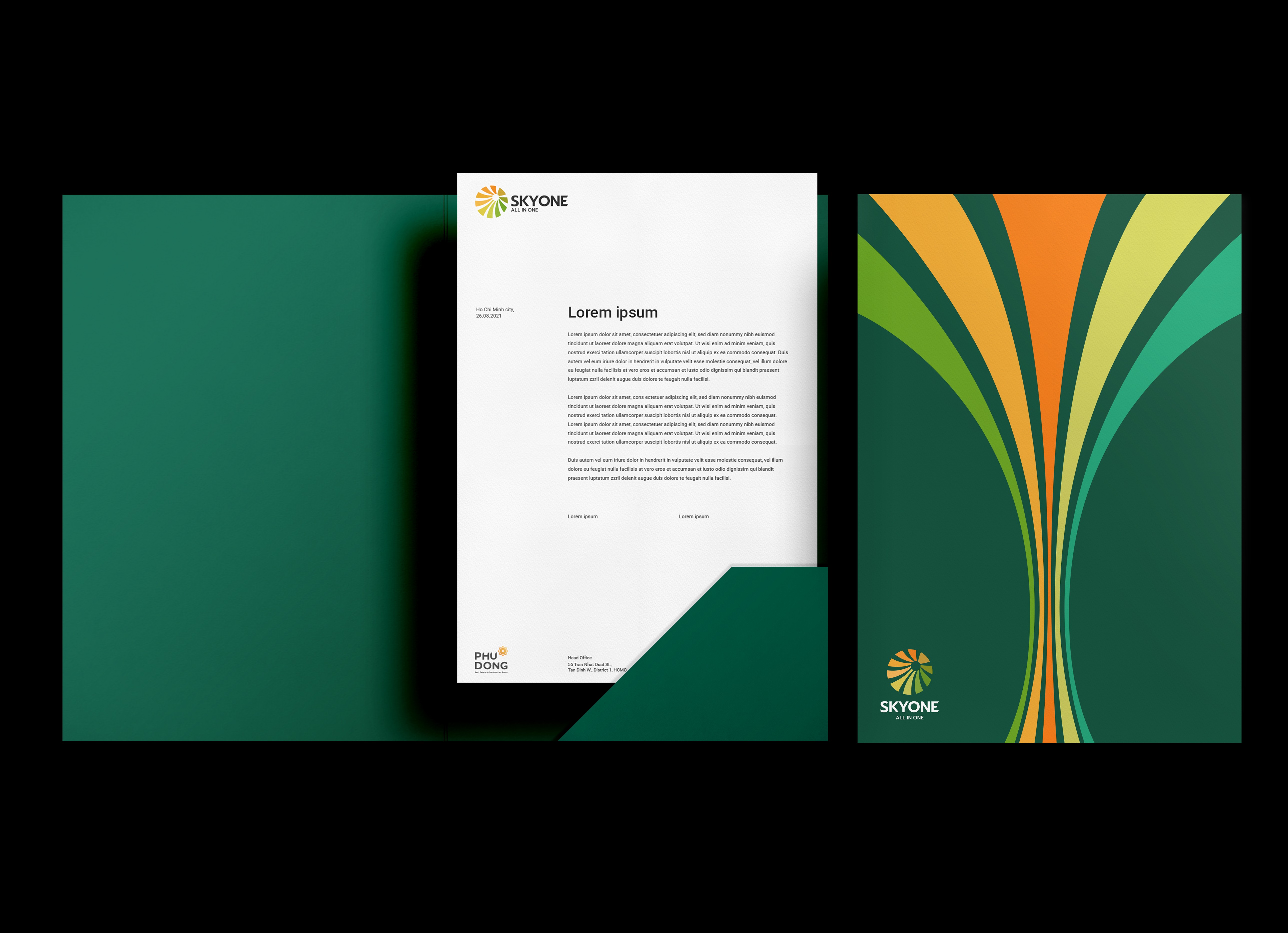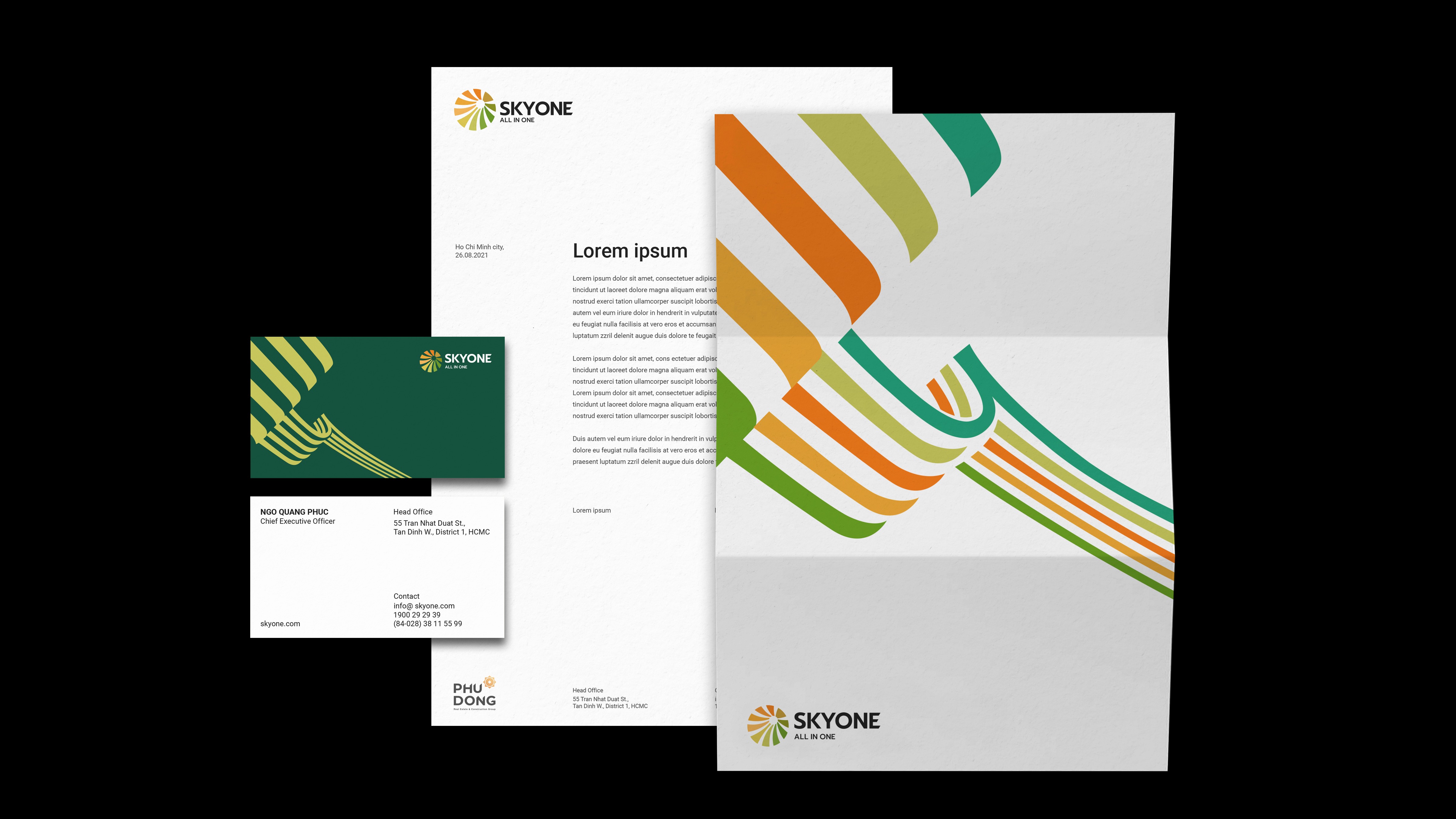 The overall idea of the logo design for the Sky One project is inspired by the flow of fountains flowing from above, meaning fortune and prosperity converge on one point, true to the meaning of the name. of the project: Sky One - All in One