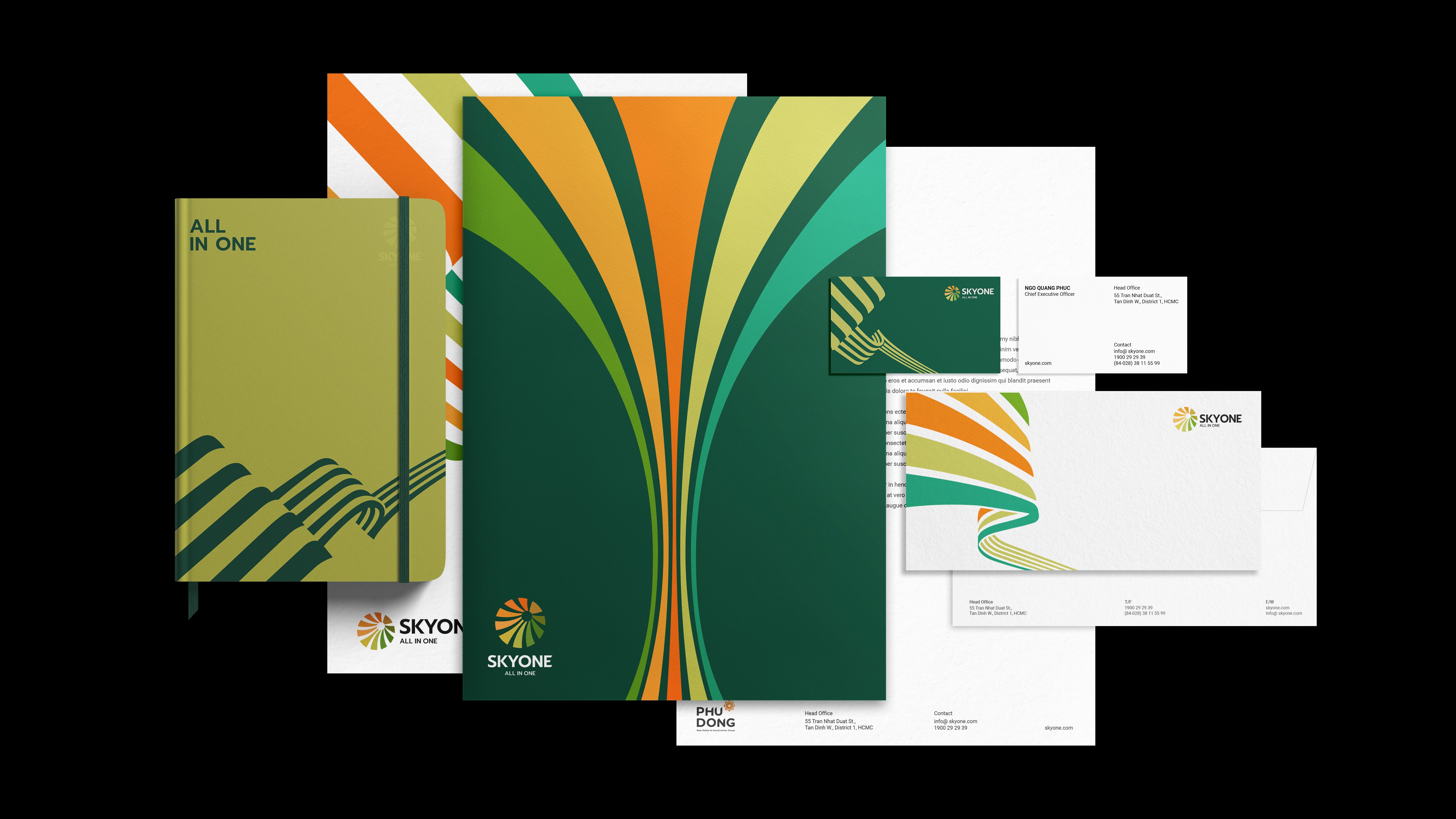 From the logo, the main graphic design of the project is deployed and developed into colorful bands, like waterfalls spreading positive energy everywhere. The strip of light with 5 colors represents the “Five blessings”, the number 5 is also the birth sign in feng shui, implying that all things multiply, flourish, be rich and have a lot of vitality.