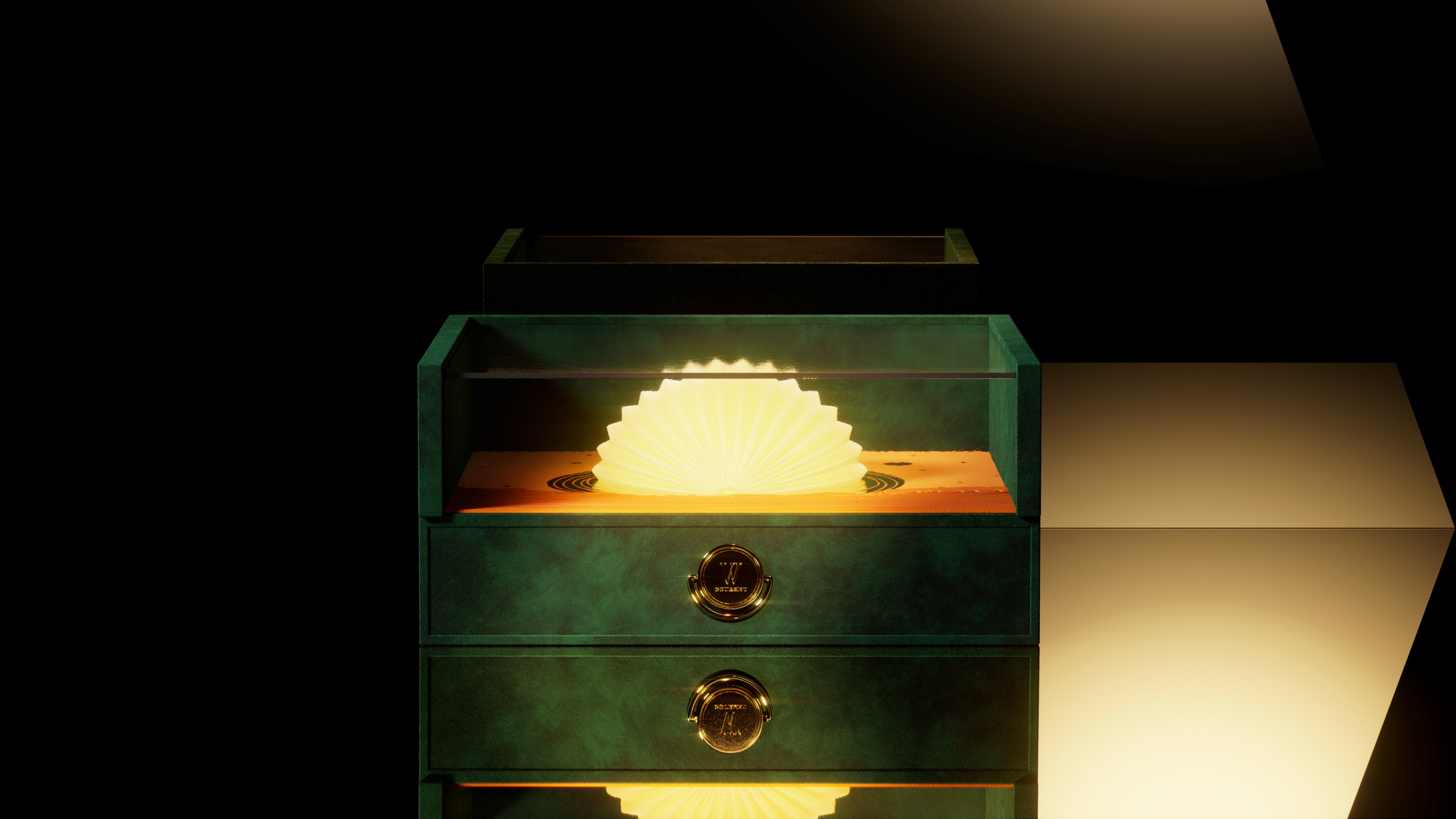The transparent lid is crafted from mica, allowing viewers to clearly see every detail of the Mid-Autumn night scene. The box's surface is wrapped in velvet fabric with a sturdy rim frame and metal handle, creating a refined and durable whole.