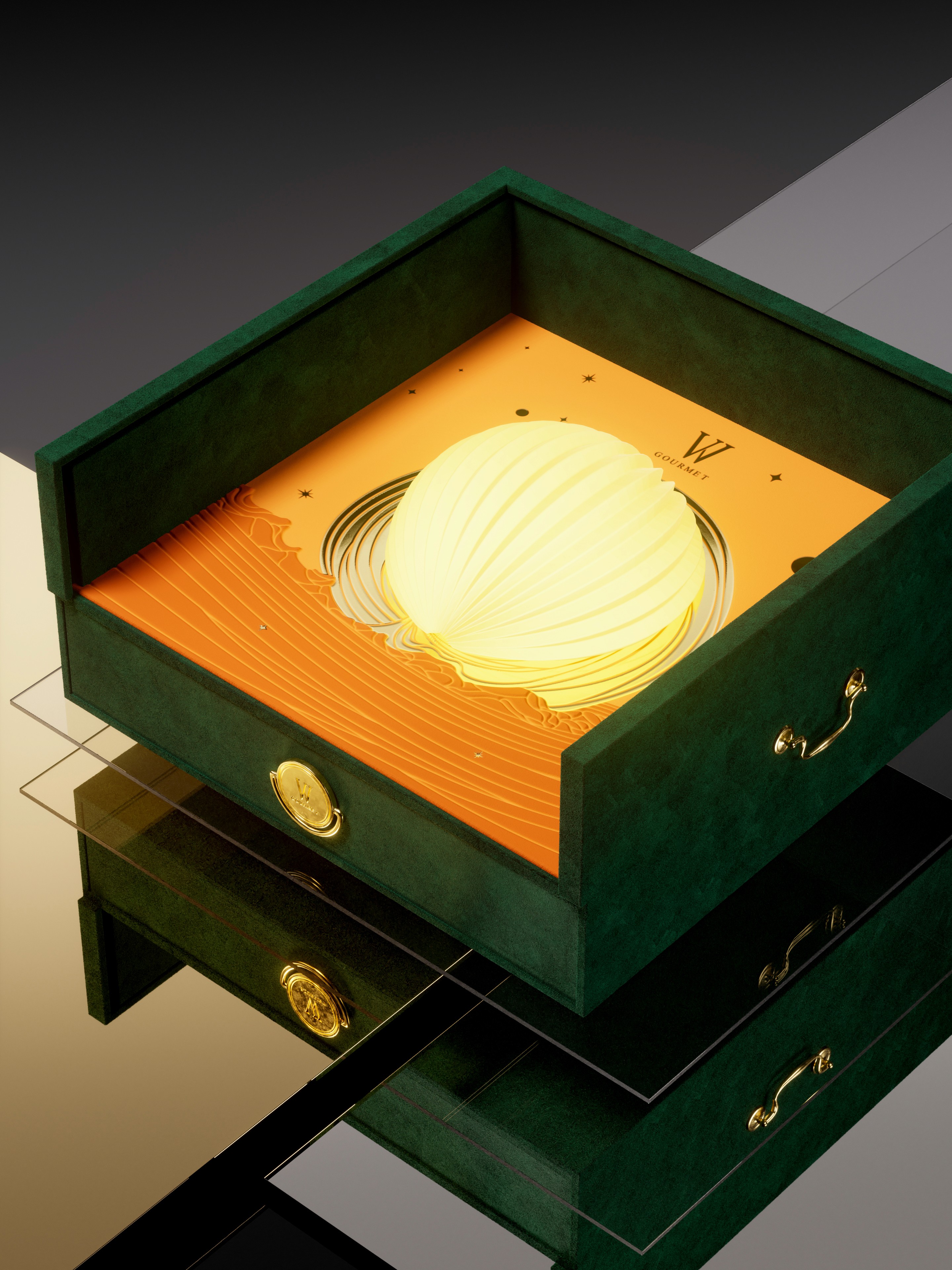 In the 2023 Mid-Autumn season, Bracom and the W Gourmet collaboratively crafted packaging that draws from the brilliance of the full moon as the focal point. Under the concept of "The Moon's Celebration" the moon's image is intricately etched to become the essence of the creation. The ethereal scene of the Mid-Autumn night, where the heavens meet the earth, is encapsulated within the design of the "moon box." The moon's image, observed from above, is creatively reconstructed through lenses and design language.